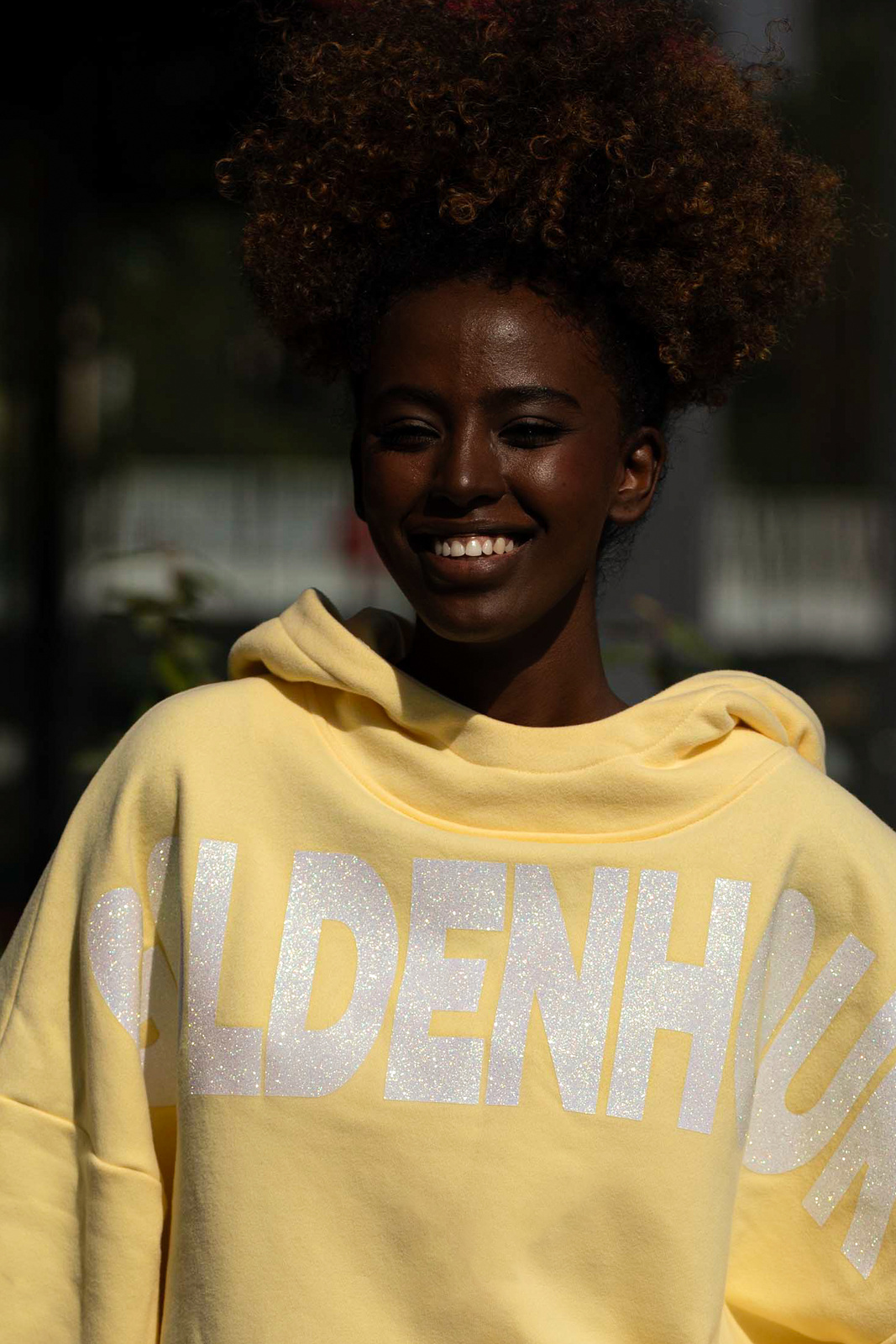 Biggy to taki must have jeśli cenisz sobie wygodę i styl w jednym. Jest oversize’owa czyli tak to co w GST lubimy najbardziej :) A najlepsze? Ma węższy ściągacz na dole, więc możesz ją dopasować tak, jak chcesz, wyżej, niżej, jak Ci pasuje. Na froncie duży napis GOLDEN HOUR wykonany z glittera w kolorze białym. Błyszczy się przy każdym ruchu i odbiciu światła, delikatnie, ale wyraziście. Nie świeci się “na siłę”, tylko robi swoje. No i ten kaptur, mega duży, a do tego wykończenie przy szyi, które naprawdę przyciągają uwagę. Uszyliśmy BIGGY z dzianiny premium o gramaturze 320 g z diagonalnym splotem i wykończeniem typu skin peach, które daje wyjątkową miękkość w dotyku dodatkowo dzianina została dodatkowo zmiękczona. Raz założysz i już nie będziesz chciała jej zdjąć. Serio, nie będziesz żałować!