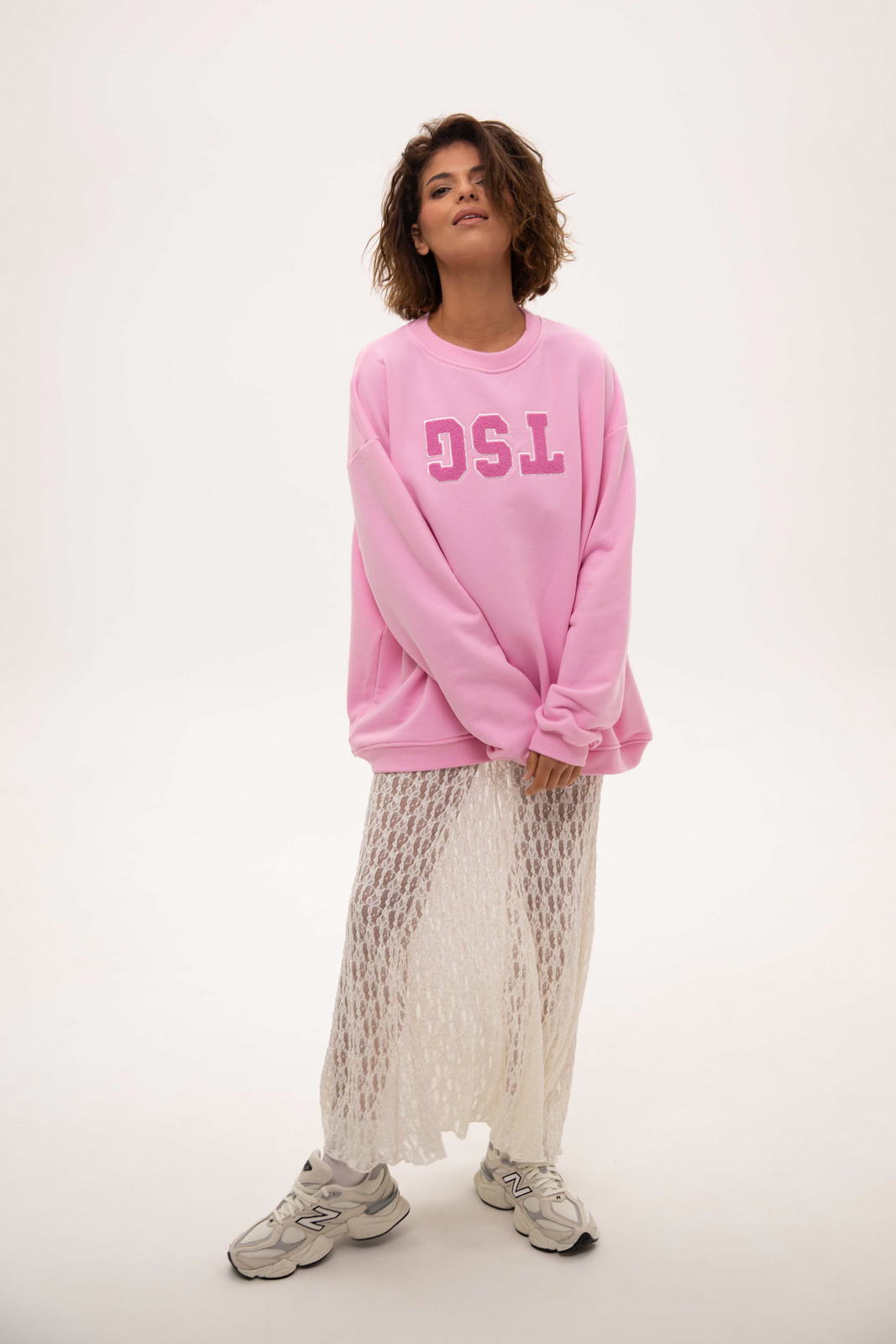 Miękka, wygodna i totalnie urocza, ta bluza to cukierek nie tylko z nazwy. W cukierkowym odcieniu różu i z puszystym haftem chenille w klimacie varsity, od razu robi klimat cozy z charakterem. Oversizowy, dłuższy krój daje pełen luz i swobodę, czy to do spodni, legginsów, czy na przekór do delikatnej spódnicy. Uszyta z premium dzianiny diagonal pętelka skin peach, przyjemnie otula i ma ten efekt „wow, jak to miękkie!”. Gramatura 320 g + dodatkowe zmiękczanie czyli bluza, której nie będziesz chciała zdejmować.