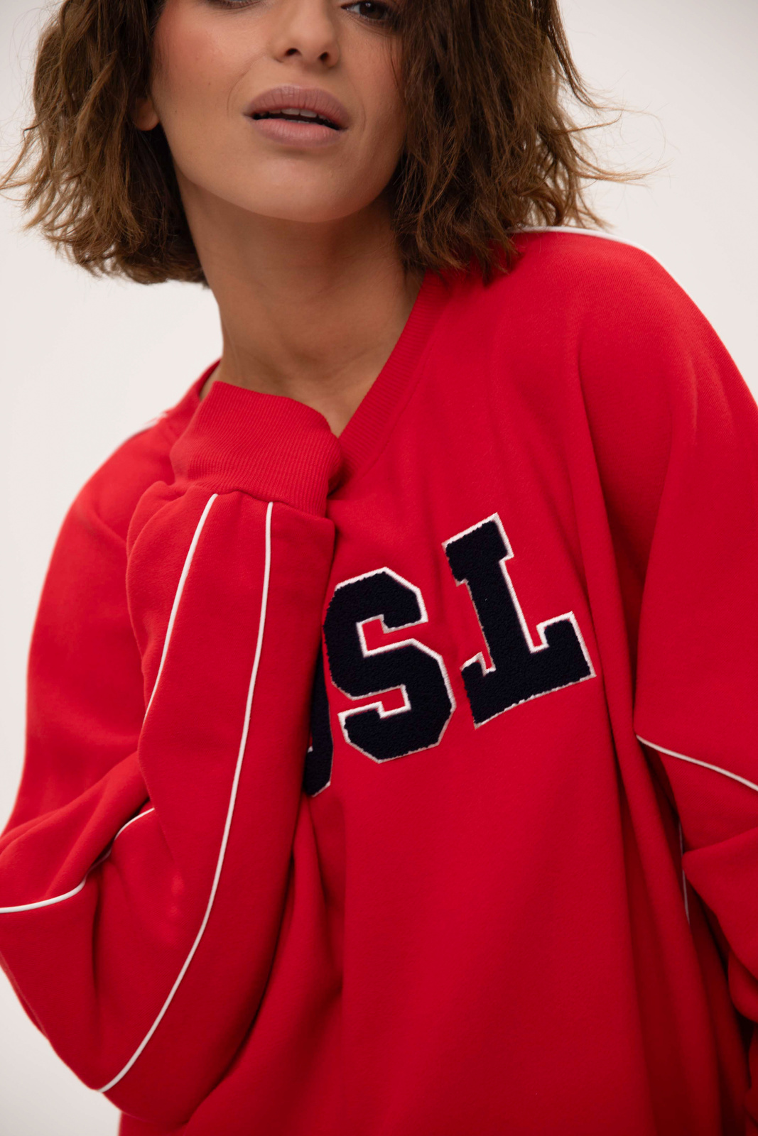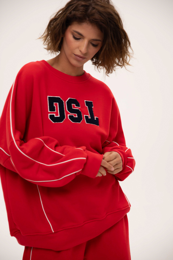 Bluza ACTIVE to nasz najnowszy model, oczywiście oversizowy i mega wygodny! Dzianina diagonal z 320g z efektem skin peach oraz dodatkowo zmiękczona. Haft chenille GST w granacie z białym konturem dodaje jej lekko sportowego sznytu. A kontrastowe lamówki robią subtelne „wow", nawet gdy stoisz tyłem.
