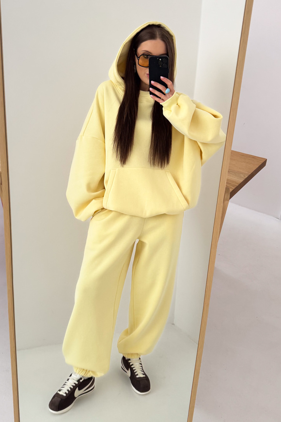 Luz, wygoda i modny oversize w kremowo maślanym odcieniu. Spodnie o kroju balloon z elastycznymi ściągaczami w kostkach świetnie układają się na sylwetce i dają pełną swobodę ruchu. Uszyte z miękkiej, przyjemnej w dotyku dzianiny z wykończeniem drapanym 280g, ciepłe, ale lekkie, idealne na co dzień. Świetnie wyglądają solo, ale w duecie z bluzą BIGGY BUTTERCREAM tworzą zestaw, w którym możesz chodzić cały dzień w domu, na spacerze czy w podróży. Komfort, który chce się nosić non stop.
