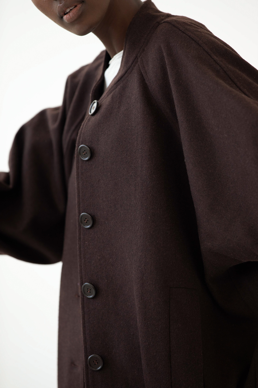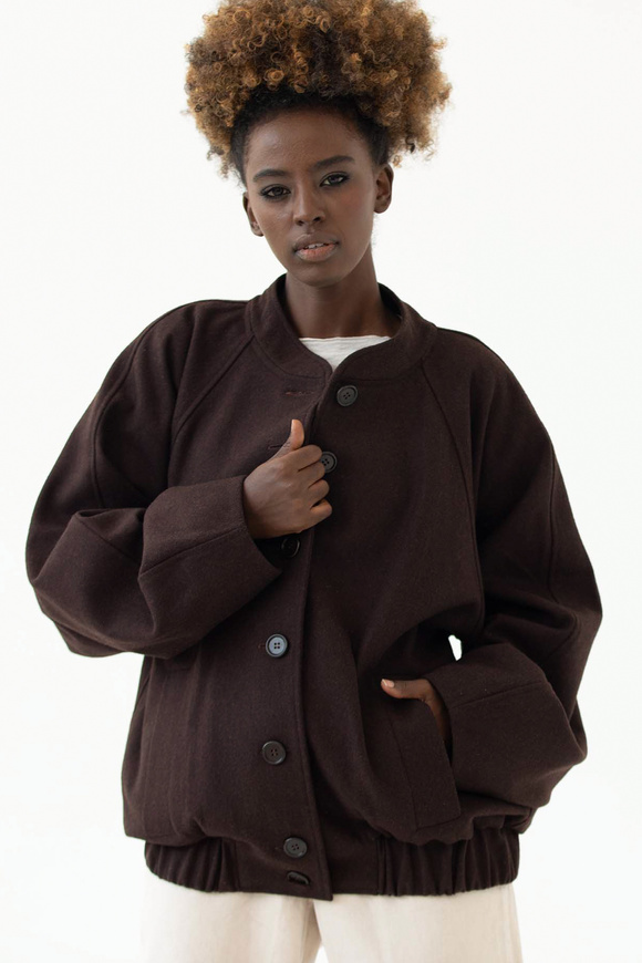 Oversize’owa kurtka w głębokim odcieniu espresso, zapinana na duże guziki. Uszyta z mieszanki 60% wełny i 40% wiskozy, z podszewką w 100% bawełnianą, zapewnia ciepło i komfort w codziennym noszeniu. Luźny krój z lekko obniżoną linią ramion i wsuwanymi kieszeniami podkreśla swobodny, nowoczesny charakter. Elastyczne wykończenie dołu dodaje całości sportowej lekkości i wygody. To idealne połączenie klasyki i casualowej nonszalancji, a najlepsze jest to, że mieszczą się pod nią wszystkie nasz oversizowe bluzy ;)