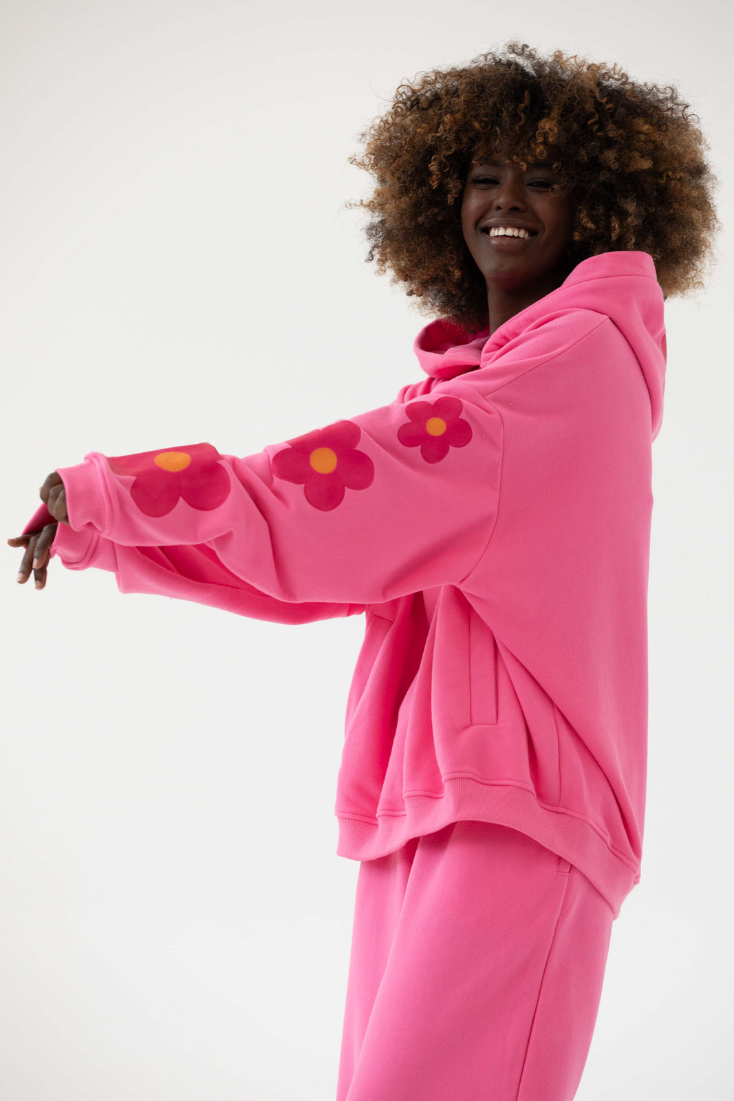 To bluza, która od razu poprawia humor. CRASH BLUSH to połączenie intensywnego różu z kwiatowymi aplikacjami, które sprawiają, że każda stylizacja nabiera charakteru. Jest wyrazista, ale przy tym niesamowicie miękka i wygodna, idealna, żeby dodać sobie energii w codziennym biegu. Dzianina premium o gramaturze 280 g daje uczucie solidności, a jednocześnie została specjalnie zmiękczona, żeby otulała jak najprzyjemniej i oczywiście z uszlachetnieniem skin peach. Kwiaty nadrukowane na rękawach i kapturze to nasz znak rozpoznawczy, subtelny detal, który sprawia, że bluza jest unikatowa i wyróżnia się w tłumie. CRASH BLUSH to wybór dla tych, które lubią łączyć komfort z odrobiną zabawy modą. Noś ją z jeansami, szortami albo w komplecie ze spodniami w tym samym kolorze, zawsze wygląda świeżo, stylowo i po prostu pięknie. To bluza, w której możesz pić poranną kawę, wskoczyć na miasto czy spędzić leniwy wieczór, a za każdym razem poczujesz się wyjątkowo.