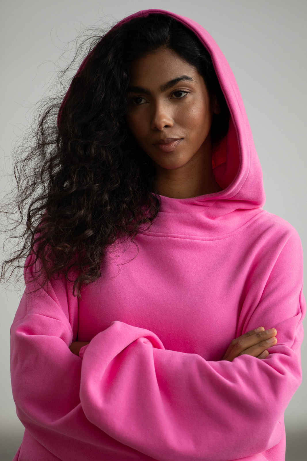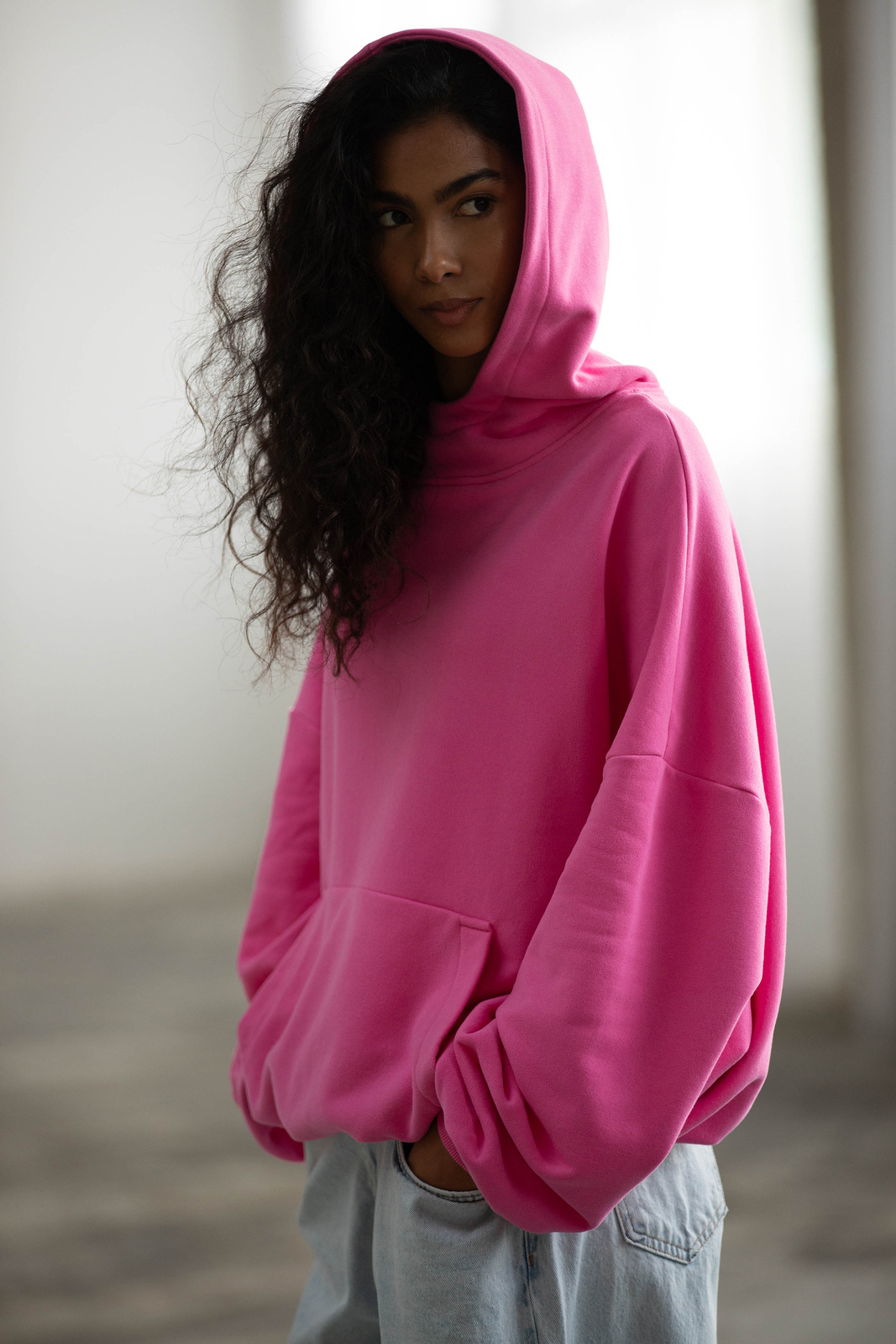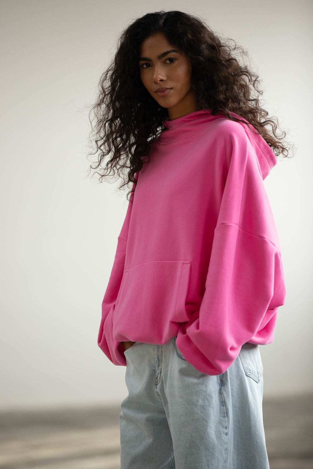 BIGGY to propozycja dla miłośników swobodnego stylu i komfortu. Oversize'owy krój zapewnia pełną wygodę, a węższy ściągacz w dolnej części bluzy pozwala na dopasowanie jej w okolicy talii lub bioder. Duży kaptur oraz charakterystyczne wykończenie przy szyi przyciąga uwagę i dodaje unikalnego akcentu. BIGGY AURORA PINK jest wykonana z dzianiny premium pętelkowej o gramaturze 280 g jest mięsista i miękka. Dodatkowo w tej wersji ma uszlachetnienie skin peach po zewnętrznej stronie czyli efekt miękkiej skórki brzoskwini. Tył bluzy zdobi śnieżynka wykonana z srebrnych kryształków, które błyszczą na różne kolory. Ten model bluzy to doskonały wybór na chłodniejsze dni niezależnie od tego czy wybierasz się na relaksujący spacer czy planujesz aktywny dzień, BIGGY jest doskonałym wyborem, który łączy komfort i styl.