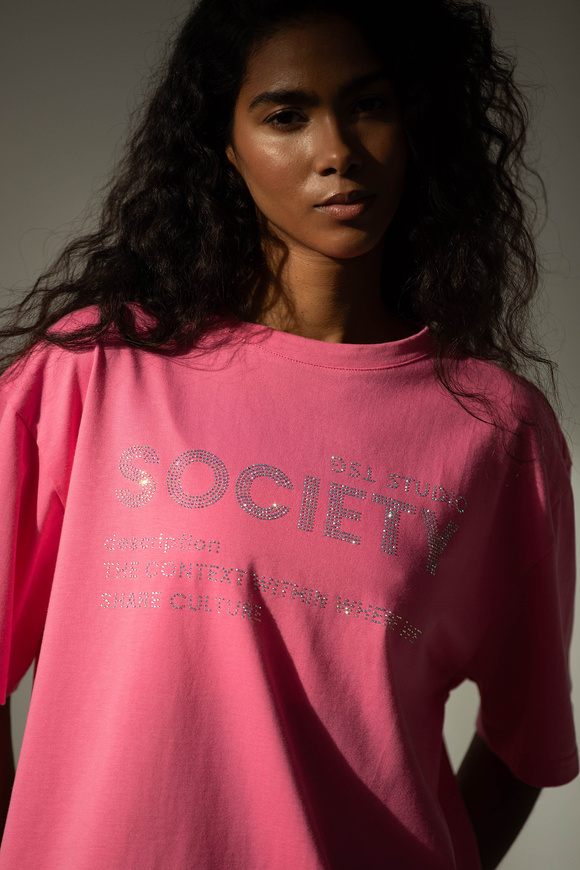 Połączenie luzu, blasku i pewności siebie. Aplikacja SOCIETY wykonana z kryształków, które odbijają światło jak tęcza, tworzą efekt subtelnego, ale wyraźnego błysku. Ten model został zaprojektowany po to, żebyś czuła się wyjątkowo nawet w najprostszej stylizacji, too t-shirt, który przyciąga światło (i spojrzenia).