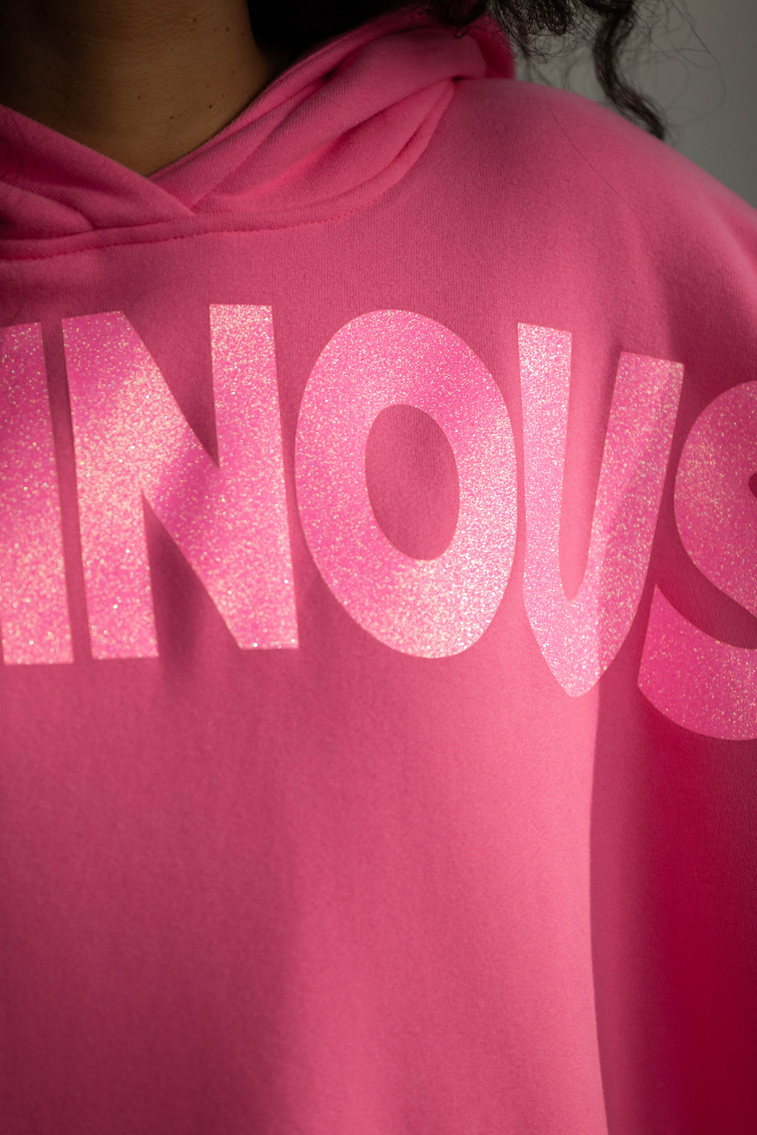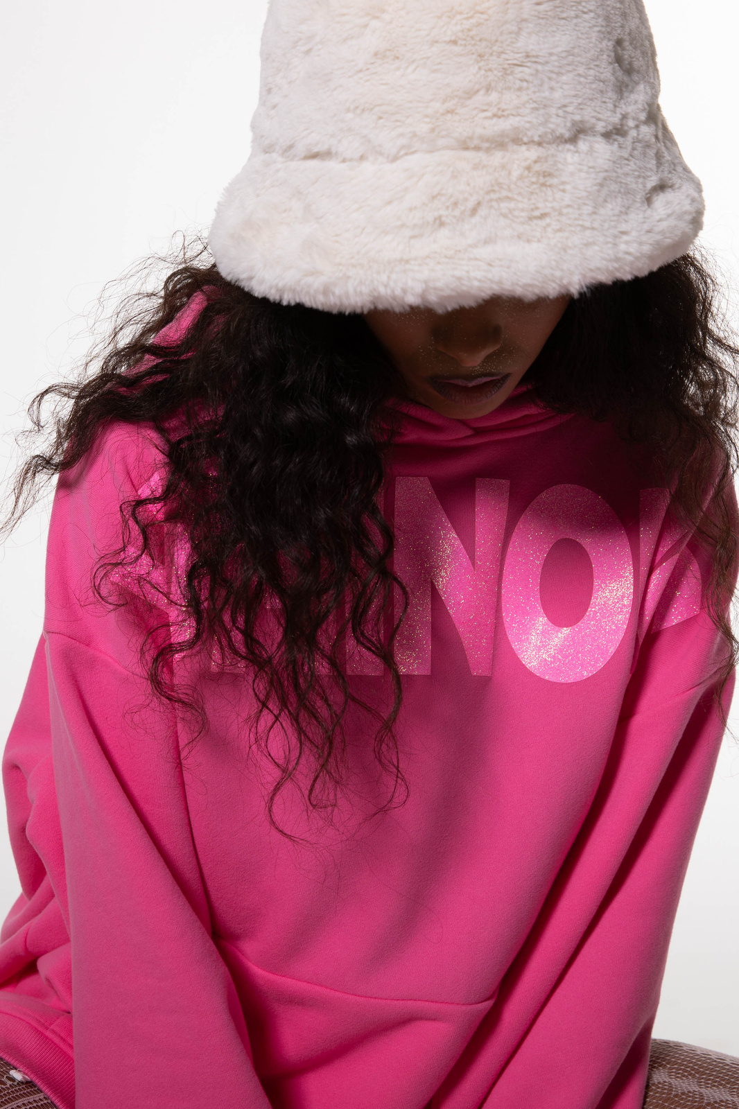 Wystarczy jedno spojrzenie, żeby wiedzieć, że to coś więcej niż bluza. Na froncie duży napis Luminous wykonany z glittera. Błyszczy się przy każdym ruchu i odbiciu światła, delikatnie, ale wyraziście. Fason oversize z obniżoną linią ramion, dużym kapturem i kieszenią typu kangurka. Uszyta z dzianiny premium o gramaturze 320 g, z diagonalnym splotem i wykończeniem typu skin peach, które daje wyjątkową miękkość w dotyku, ale to nie wszystko.. dzianina jest dodatkowo zmiękczona i w dotyku jest niesamowicie przyjemna. To nie jest przypadkowa bluza, to ta, po którą sięgasz, kiedy chcesz czuć się sobą: swobodnie, komfortowo, z lekkością i stylem. Noś ją na sportowo, na mieście, do spodni, do sukienki, w dzień, w nocy.. ;)
