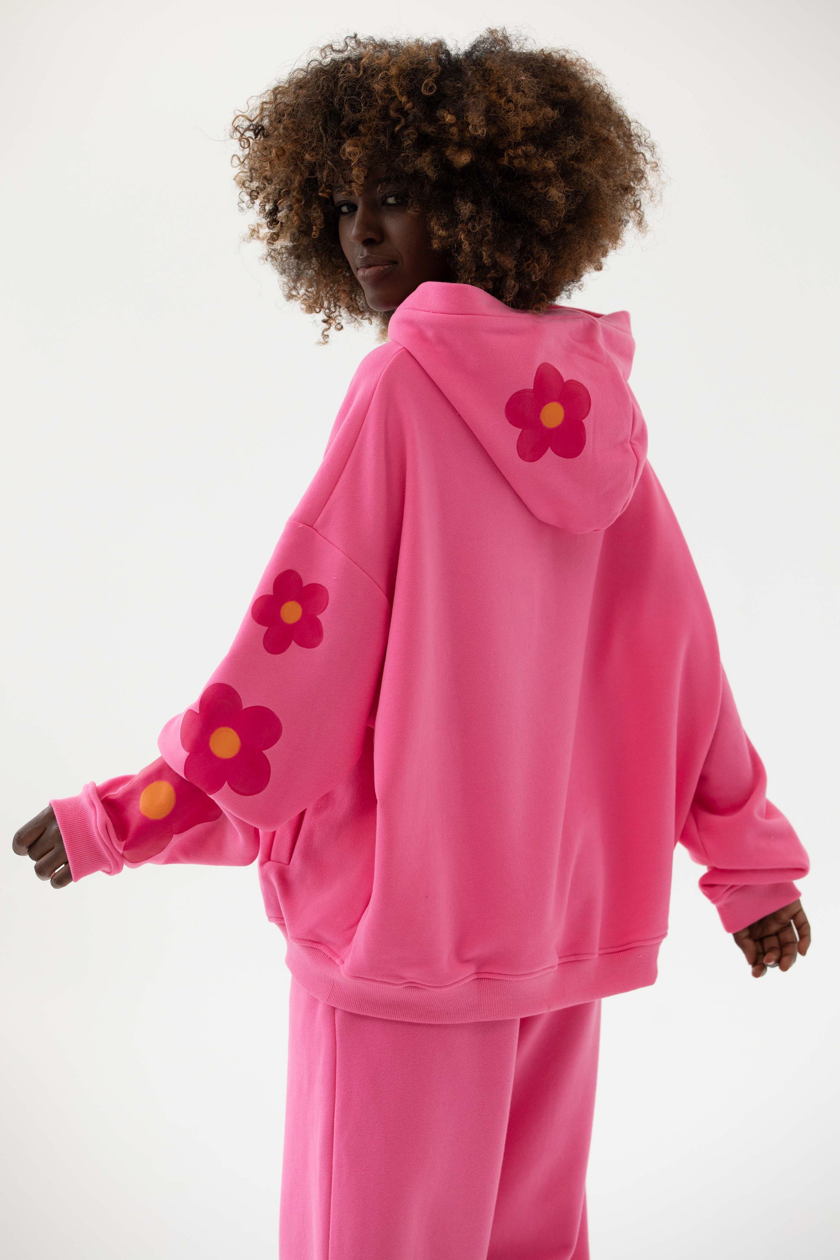 To bluza, która od razu poprawia humor. Crash to połączenie intensywnego różu z kwiatowymi aplikacjami, które sprawiają, że każda stylizacja nabiera charakteru. Jest wyrazista, ale przy tym niesamowicie miękka i wygodna, idealna, żeby dodać sobie energii w codziennym biegu. Dzianina premium o gramaturze 280 g daje uczucie solidności, a jednocześnie została specjalnie zmiękczona, żeby otulała jak najprzyjemniej i oczywiście z uszlachetnieniem skin peach. Kwiaty nadrukowane na rękawach i kapturze to nasz znak rozpoznawczy, subtelny detal, który sprawia, że bluza jest unikatowa i wyróżnia się w tłumie. CRASH BLUSH to wybór dla tych, które lubią łączyć komfort z odrobiną zabawy modą. Noś ją z jeansami, szortami albo w komplecie ze spodniami w tym samym kolorze, zawsze wygląda świeżo, stylowo i po prostu pięknie. To bluza, w której możesz pić poranną kawę, wskoczyć na miasto czy spędzić leniwy wieczór, a za każdym razem poczujesz się wyjątkowo.