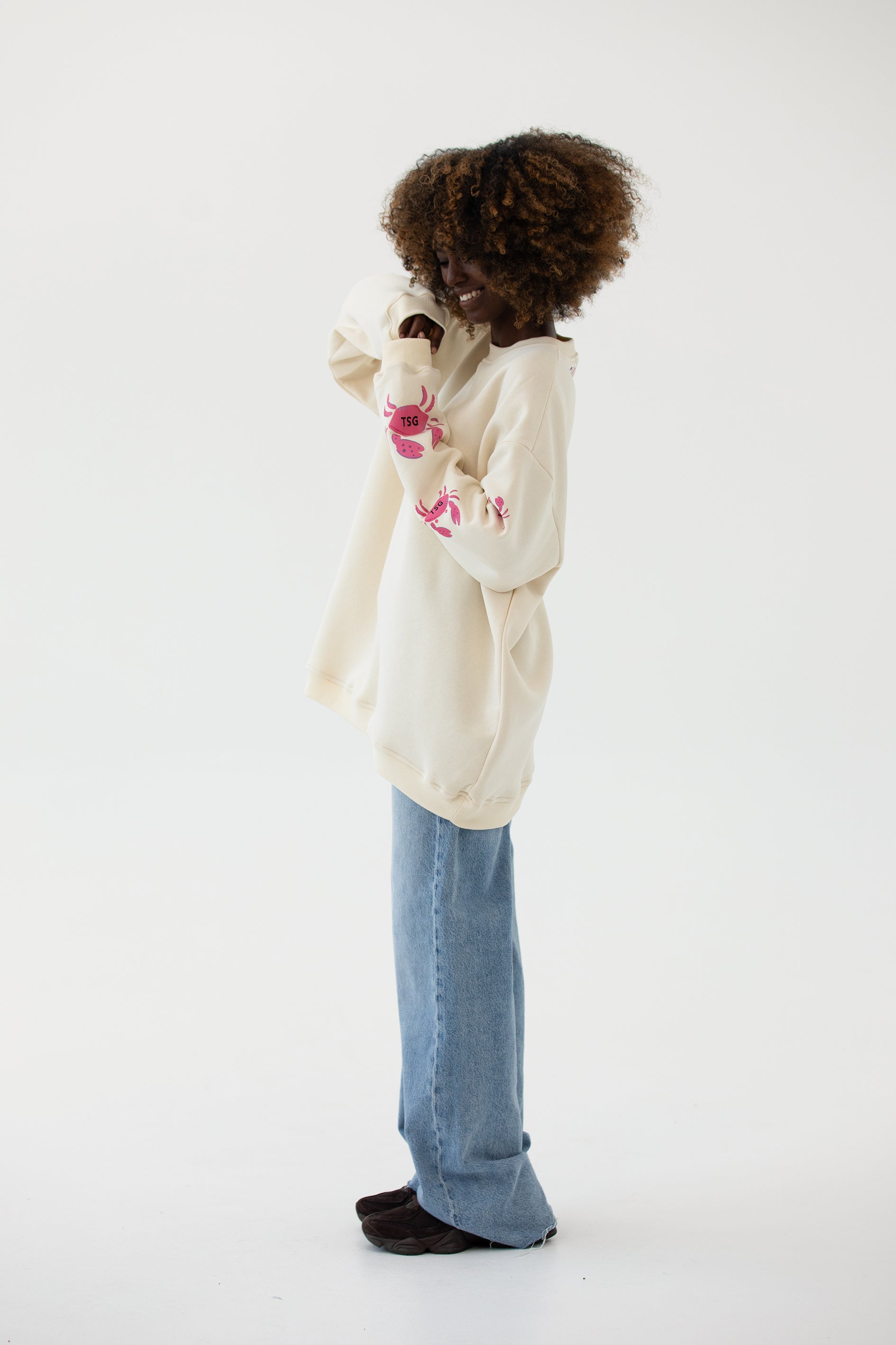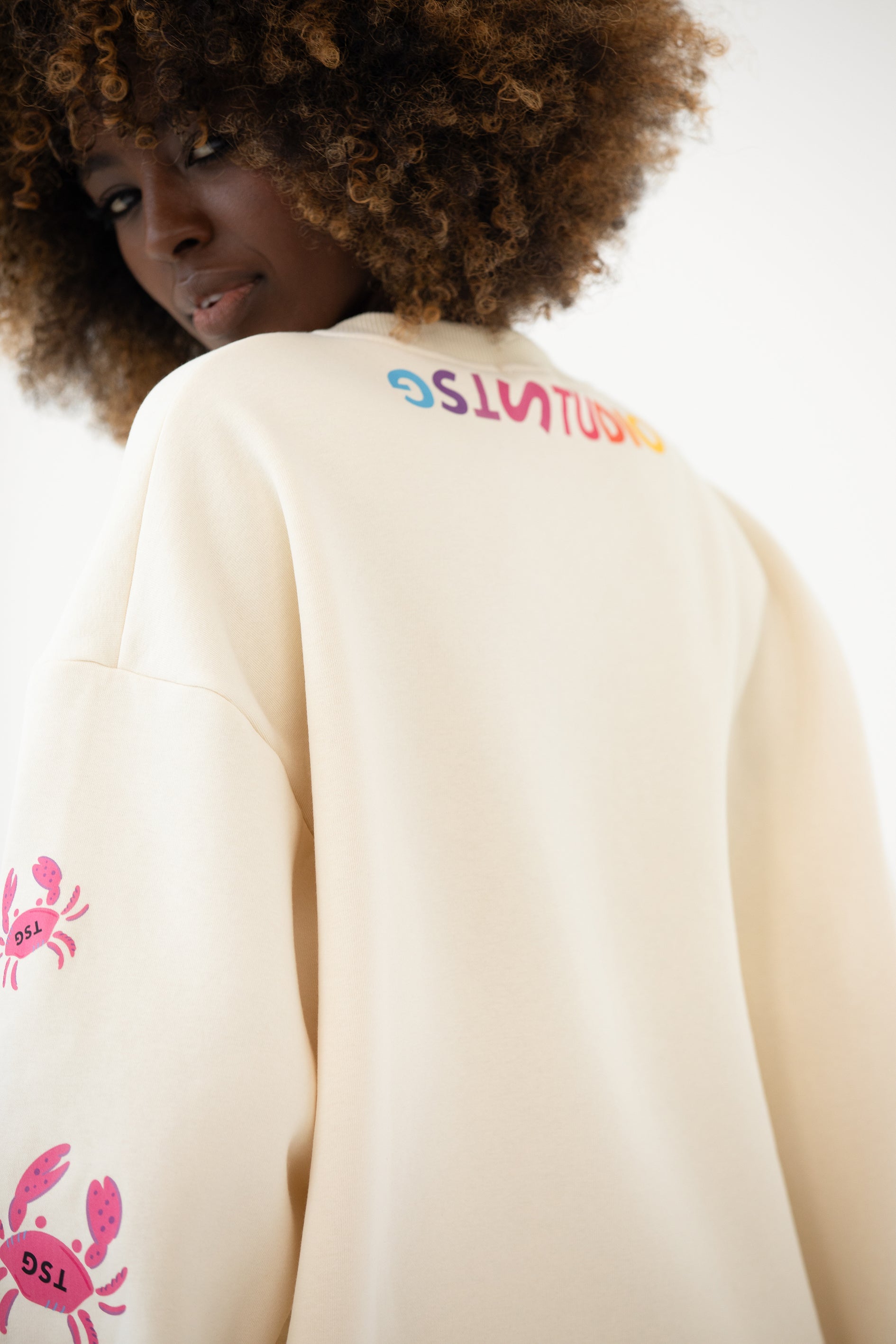 Kto powiedział, że lato kończy się we wrześniu? Easy Ocean to bluza, która zatrzymuje wakacyjny klimat na dłużej. Ciepły beż pasuje do wszystkiego, a luźny oversize’owy krój sprawia, że możesz ją nosić wygodnie przez cały rok. Na rękawie czekają urocze różowe kraby czyli mały detal, który od razu przywołuje wspomnienia plaży, słońca i beztroski. Na plecach kolorowe logo dodaje jej charakteru i lekkości. To bluza, która przypomina, że warto zachować w sobie trochę letniej energii nawet jesienią