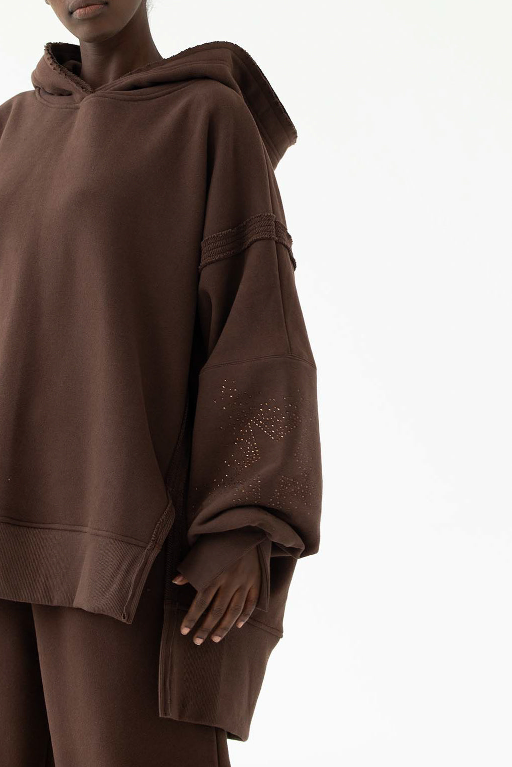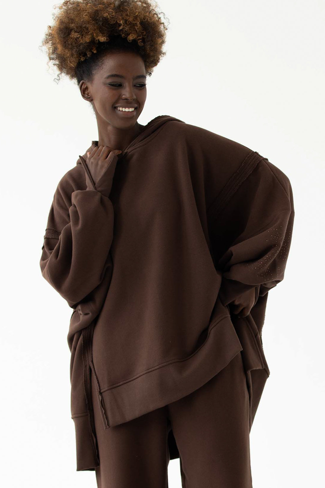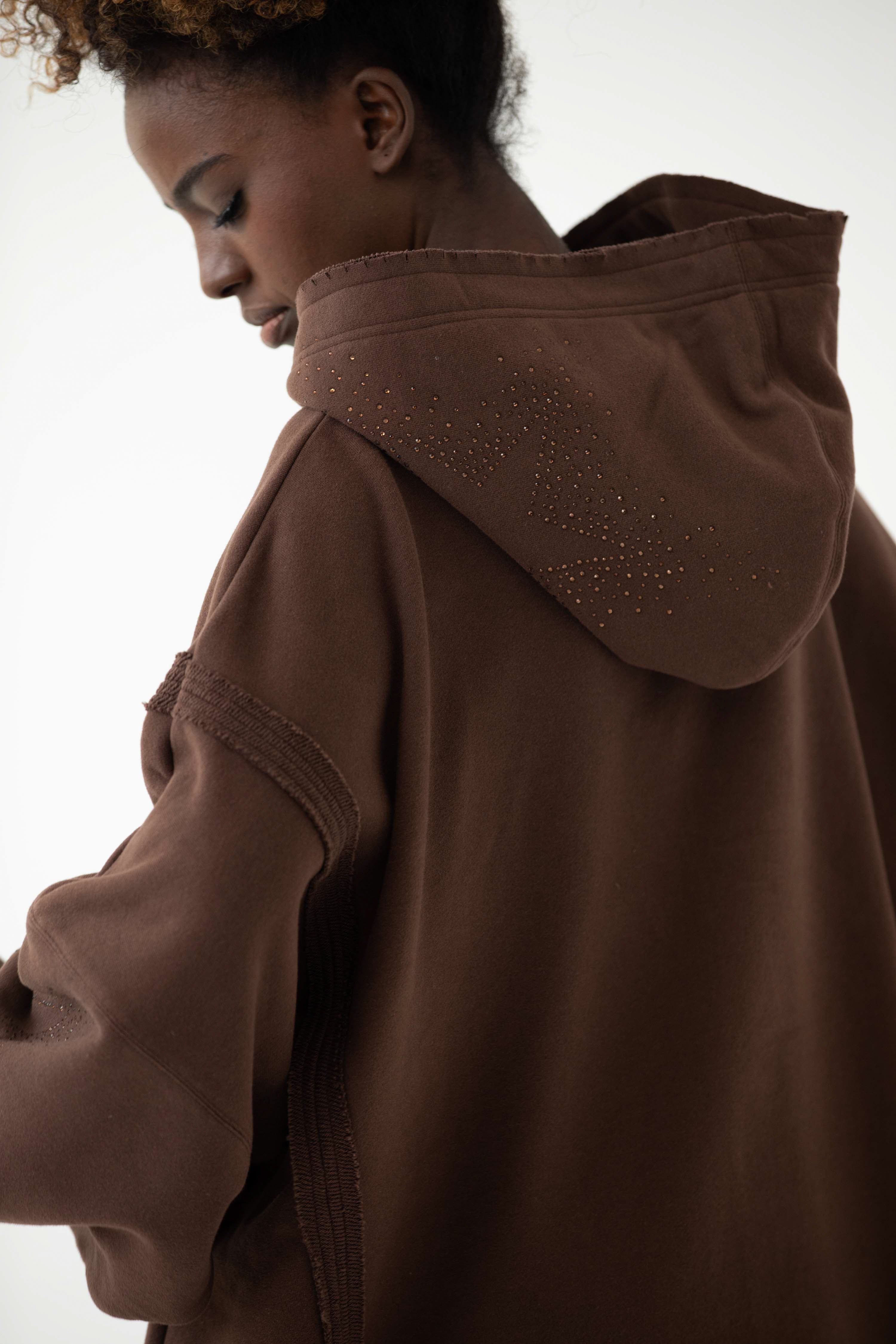 Ever to nasz flagowy model z charakterystycznymi przeszyciami, pęknięciami na rękawach oraz "pociętym" kapturem, który zaczyna wyglądać jeszcze lepiej z każdym kolejnym praniem. EVER allstars została uszyta z mięsistej dzianiny pętelkowej diagonal, gramatura 320 g, dodatkowo z uszlachetnieniem skin peach i ponownym zmiękczaniem w dotyku przypomina delikatną skórkę brzoskwini. Oprócz tego, że jest mięsista to również niesamowicie miękka i przyjemna dla skóry. Fason oversize, bardzo wygodna i charakterystyczna forma z wydłużonym tyłem. Aplikacja na kapturze i rękawie, dwie duże gwiazdy wykonane z czarnych błyszczących kryształków. Legenda głosi, że nasza EVER uzależnia i na jednej się nie kończy :) Świetnie wygląda w połączeniu z czarnymi leginsami jeansami.