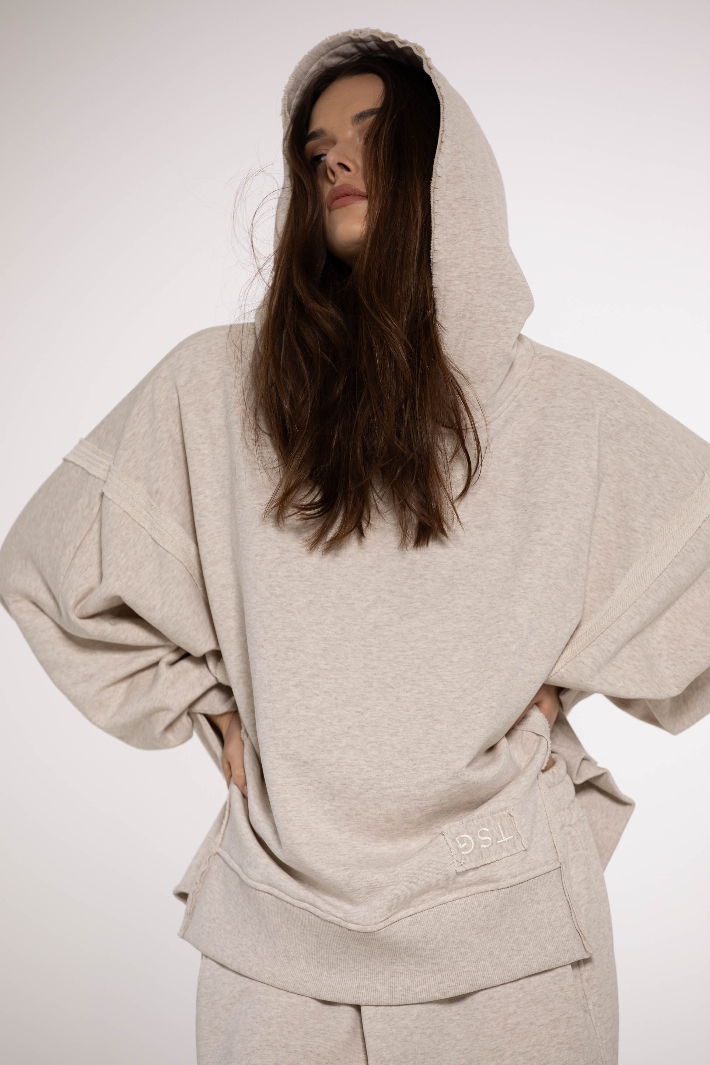 Bluza Ever to nasz flagowy model z charakterystycznymi przeszyciami, pęknięciami na rękawach oraz z dużym kapturem, który jest charakterystycznie ponacinany i wykończony na surowo. Fason oversize, bardzo wygodna i charakterystyczna forma z wydłużonym tyłem. Połącz z dedykowanymi spodniami Road Latte Melange są dokładnie w tym samym kolorze i wykonane z tej samej dzianiny. Możesz też połączyć bluzę z jeansami lub leginsami. Legenda głosi, że nasza Ever uzależnia i na jednej się nie kończy.