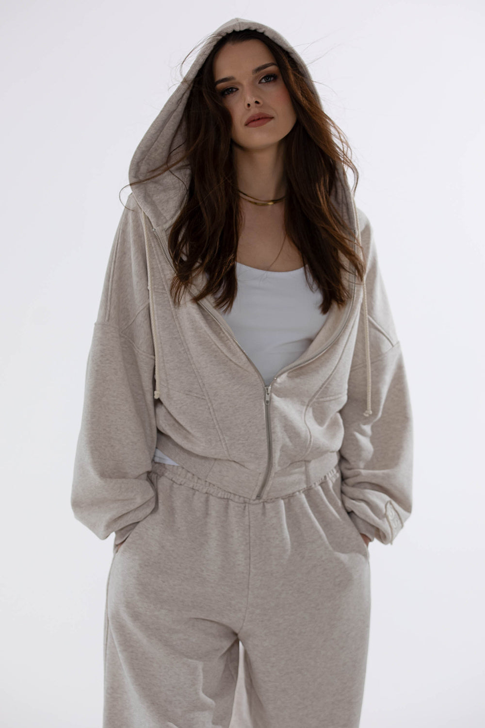 Oversizowa forma z charakterystycznymi przeszyciami i kieszeniami, w których zmieścisz najpotrzebniejsze rzeczy. Forma tej bluzy jest nieco bardziej pudełkowa od poprzednich modeli na zamek, które pojawiały się w poprzednich kolekcjach. Dzięki antyniklowemu zamkowi renomowanej firmy, nie musisz martwić się o rdzewienie czy reakcje alergiczne, idealne rozwiązanie dla wrażliwej skóry. Bluza Hailey idealnie sprawdzi się do codziennych stylizacji, niezależnie czy wybierasz się na spacer, zakupy czy spotkanie z przyjaciółmi.