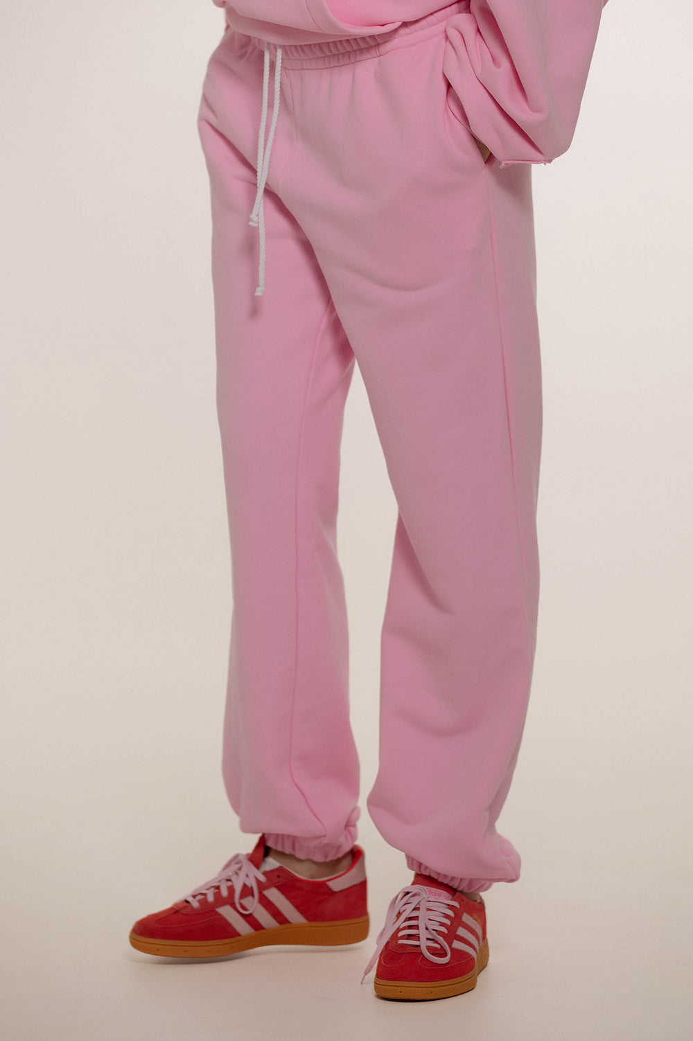 Utramiękkie i luźne joggery z szeroką nogawką. Szeroka i wygodna guma w pasie z sznurkiem, dzięki któremu dopasujesz je idealnie do sylwetki. Do joggerów Essentails Light Pink idealnie pasuje bluza Linear Hoodie to dokładnie ten sam kolor i dziania.